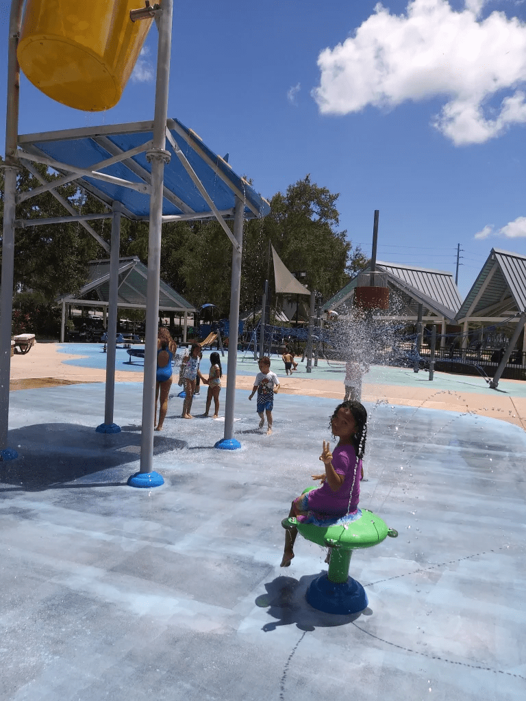 Splashpads we have been to but are not pictured here are the one at Ballast Point Park in South Tampa, the one at the St. Pete Pier and the two along the Riverwalk at Curtis Hixon Park in Downtown Tampa. West Village Park splashpad in Westchase is the splashpad cover photo on the Momudaughter homepage. There are so many more splash pads on our list of ones to visit.