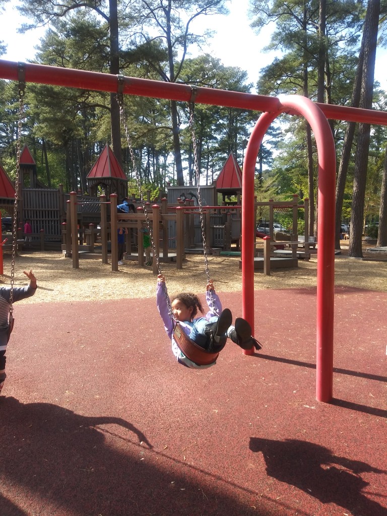 My youngest brother, and one of Daughter’s Uncles goes to the University of Salisbury. We visited him a few times last year and got to explore the small town. A couple of the attractions we found while there was a little FREE zoo. Next door there’s a nice playground called Ben’s Red Swings.