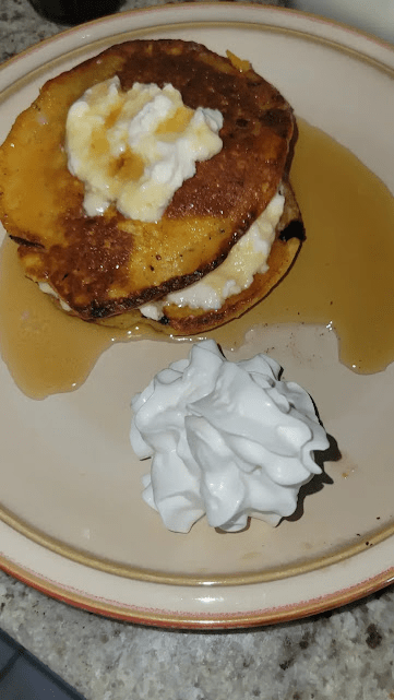 Recently I made lemon ricotta pancakes to spice up the regular cakes. The pancakes in the picture are made with sweet potato.