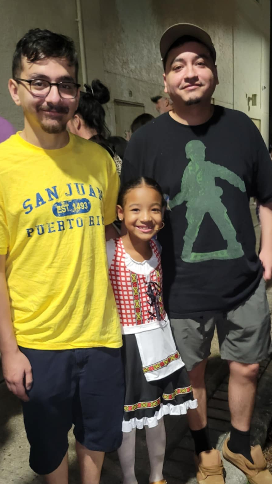 Daughter with her Uncles after her first show as a Von Trapp sibling in Sound of Music at Richey Suncoast Theatre in New Port Richey, FL.