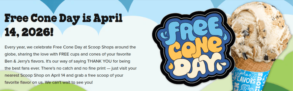 FREE ice cream from Ben & Jerry’s on Tuesday, April 14th. Local shops are in Midtown Tampa and Clearwater Beach.